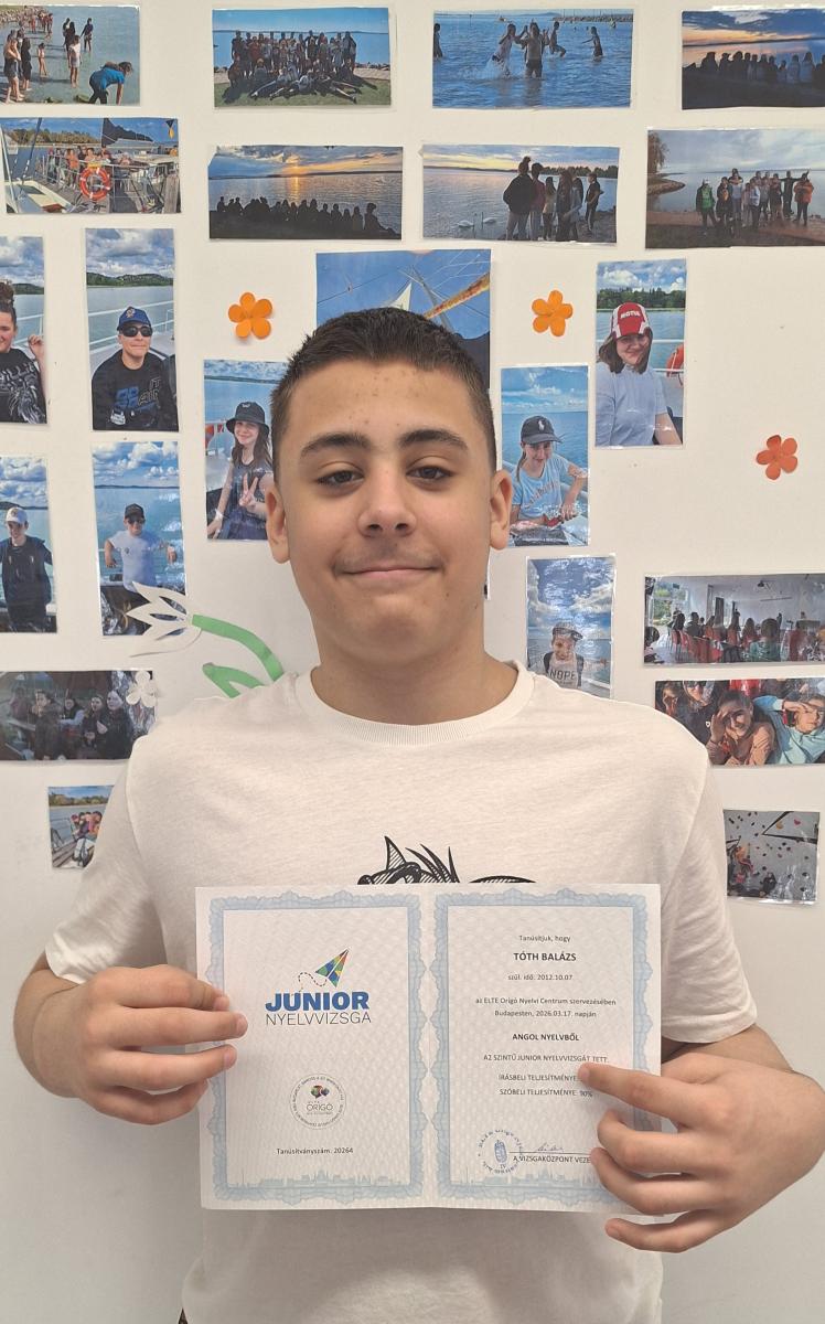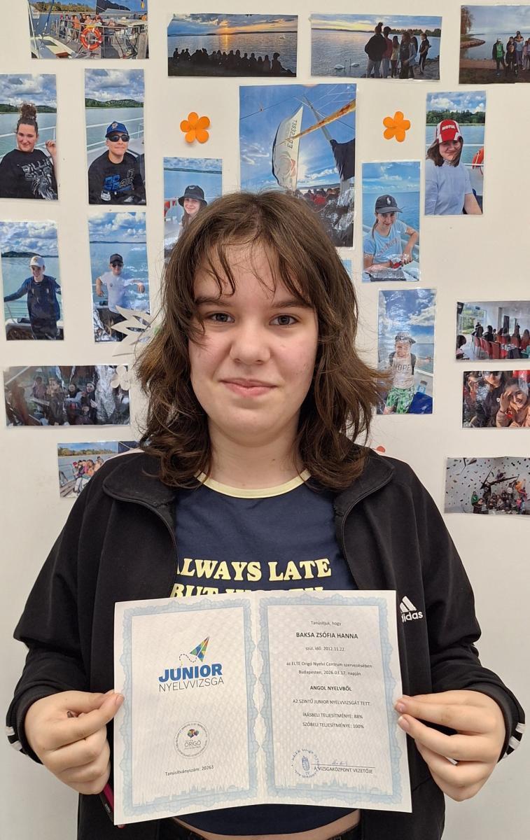 Büszkeséggel tölt el bennünket, hogy iskolánk három 7.a osztályos tanulója junior nyelvvizsgán vett részt, és mindhárman sikeresen teljesítették azt. A befektetett munka és a kitartó felkészülés meghozta eredményét, így már mindannyian nyelvvizsga-bizonyítvánnyal gazdagodtak. Intézményünk rendkívül büszke rájuk, és szívből gratulálunk ehhez a kiemelkedő teljesítményhez!