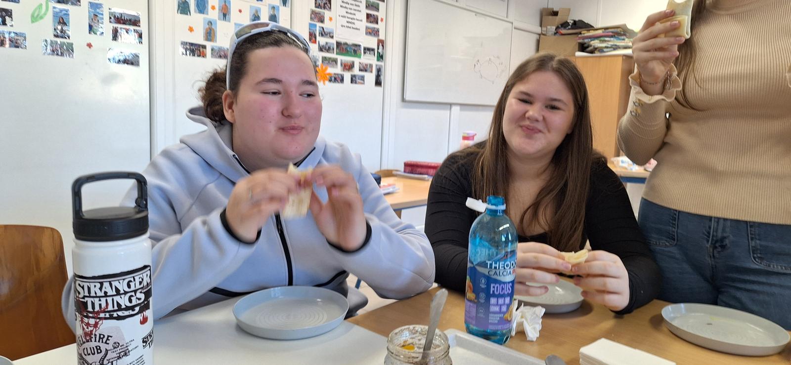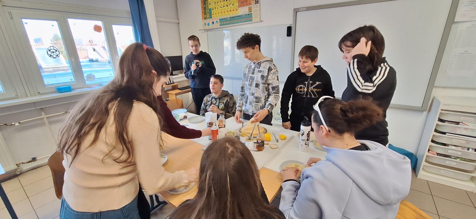 Iskolánkban is ezt a hagyományt idéztük fel. A gyerekek igazi angliai ízeket kóstolhattak: lemon curd, marmalade, valamint a hagyományos cukros-citromos palacsinta is az asztalra került. Természetesen az Amerikában népszerű juharszirup sem maradhatott ki, de Nutella és pisztáciakrém is került a palacsintákra.