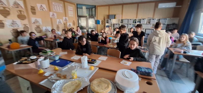 A 4., 5., 6. és a 7. osztályokban vidám palacsinta napot tartottunk. A hagyomány a húsvéti nagyböjtöt megelőző húshagyókeddhez kapcsolódik. Az angolszász országokban ilyenkor a kamrában maradt tejből, tojásból és zsiradékból készítettek palacsintát a 40 napos böjt előtt. Ez egy népszerű ünnep, amelyhez sok helyen még palacsintasütő versenyek is tartoznak.